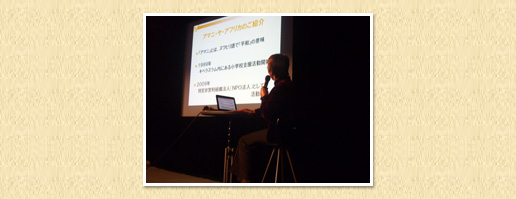県内外の小・中・高校に呼ばれ、国際理解教育の一環として、講演実施。ケニアのスラムに住む子供たちの現状やその子供たちが歌う歌、写真などを見聞きして、日本の生徒の皆さんも自らの生活を振り返り、より豊かな人生となればという想いで、講演している。